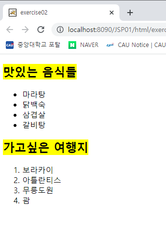 좋아하는 음식의 목록(4~5개)을 ul 태그로 웹브라우저에 출력하기