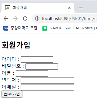 💀 ex04. form 태그를 사용해서 회원가입 양식 만들기(아이디, 비밀번호, 이름, 연락처, 이메일)