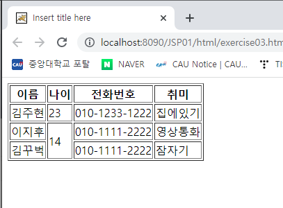 💀ex03. table 테그로 웹브라우저에 표 출력하기