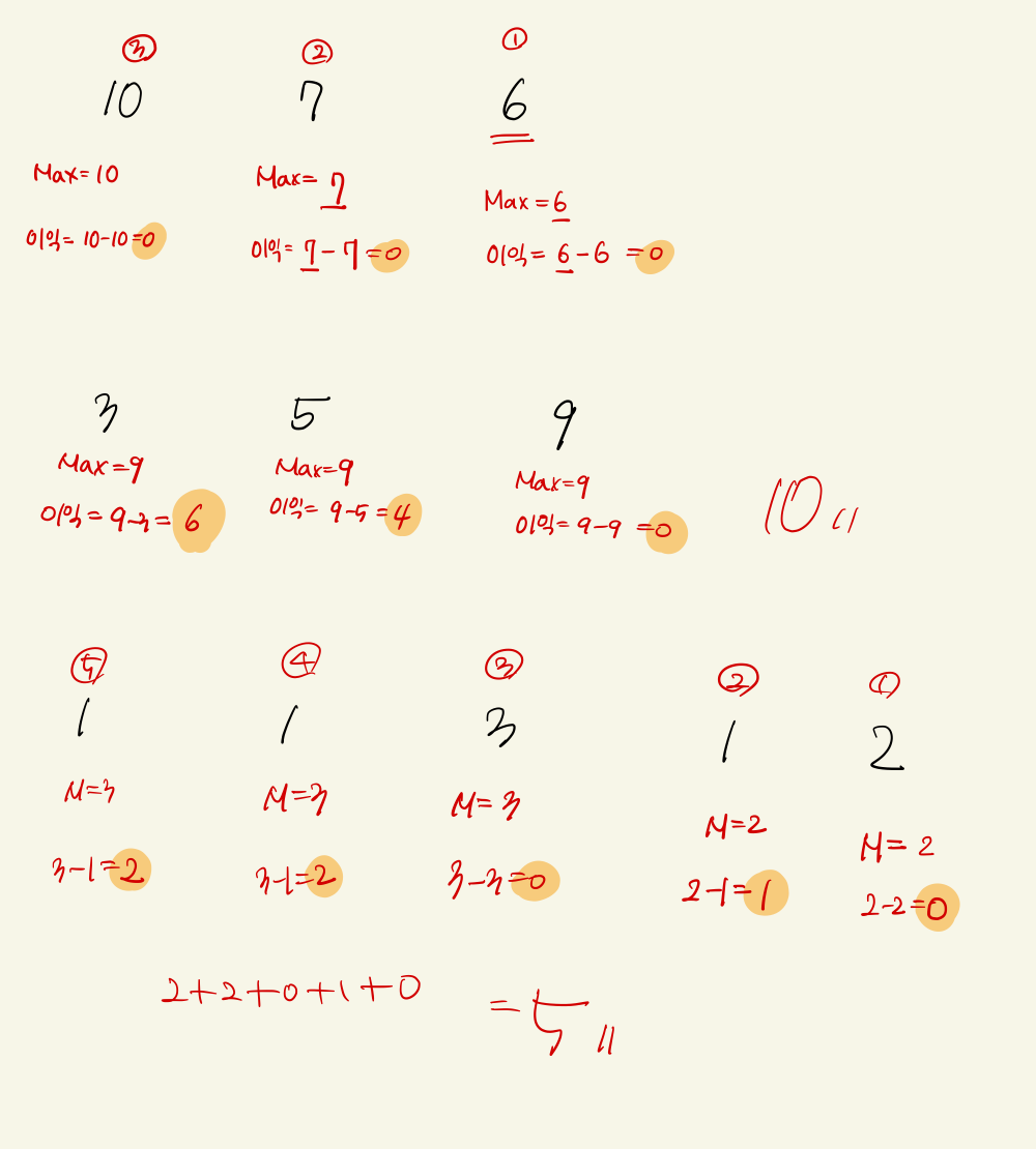 입력의 첫 줄에는 테스트케이스 수를 나타내는 자연수 T가 주어진다. 각 테스트케이스 별로 첫 줄에는 날의 수를 나타내는 자연수 N(2 ≤ N ≤ 1,000,000)이 주어지고, 둘째 줄에는 날 별 주가를 나타