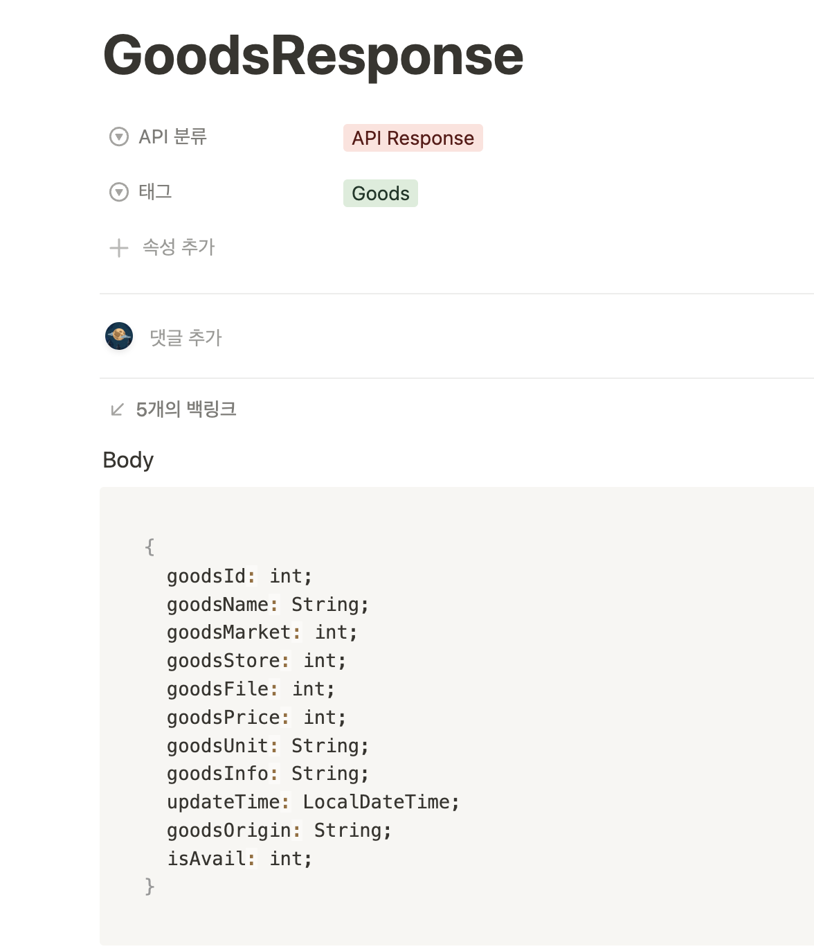 백엔드에서 MarketId를 foreign key로 지정해두니 market구조체의 모든 내용과 통채로 연결됐다고 한다.
