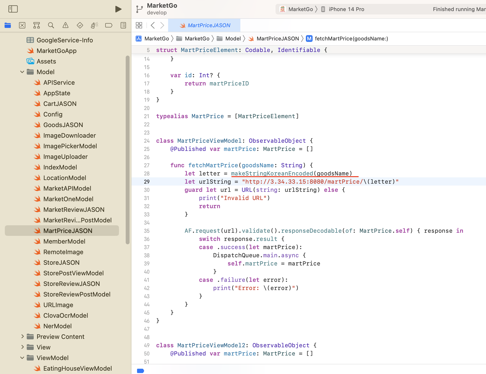 그래서 받을 때 Int형이 아닌 Market구조체 타입인 MarketOne으로 받아야 했다.