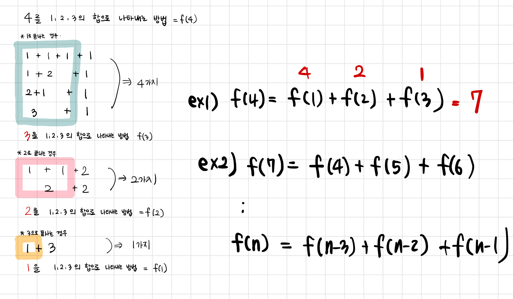각 테스트 케이스마다, n을 1, 2, 3의 합으로 나타내는 방법의 수를 출력한다.