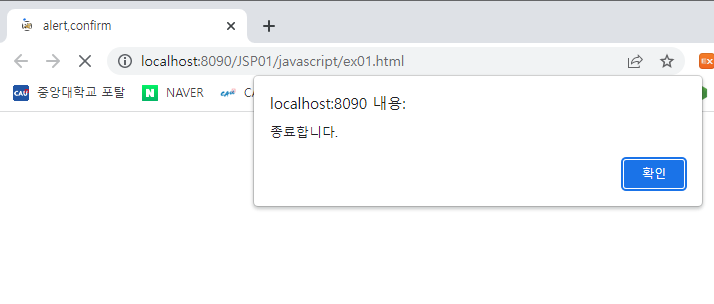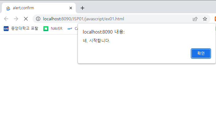 [javascript]기본 입출력 alert(메세지), confirm(메세지), prompt(메세지) 또는 prompt(메세지, 기본값)