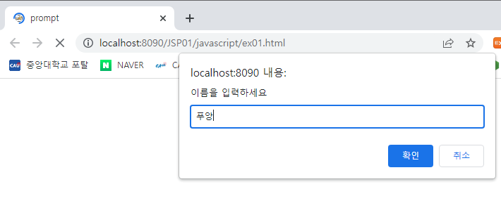 - prompt함수 : 간단한 입력을 받을수 있는 함수