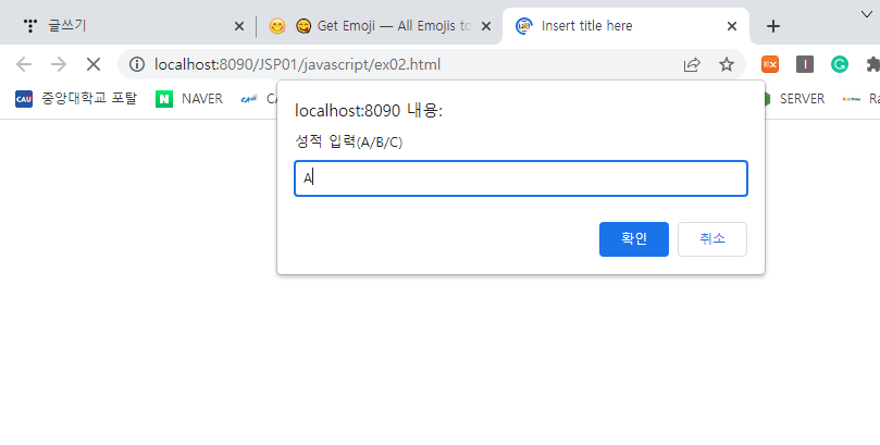 var grade=prompt('성적 입력(A/B/C) ');