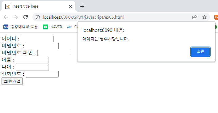 alert('아이디는 필수사항입니다.');