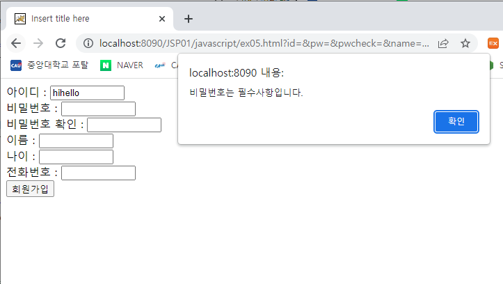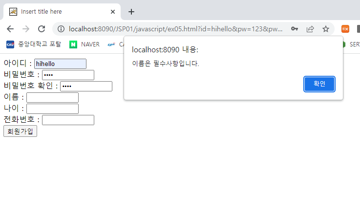 alert('이름은 필수사항입니다.');