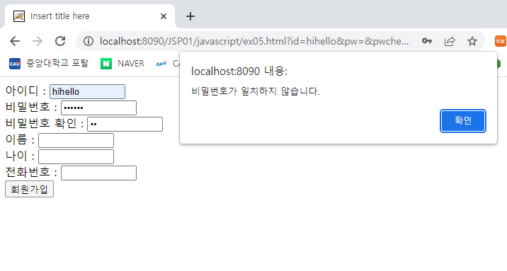 alert('비밀번호가 일치하지 않습니다.');