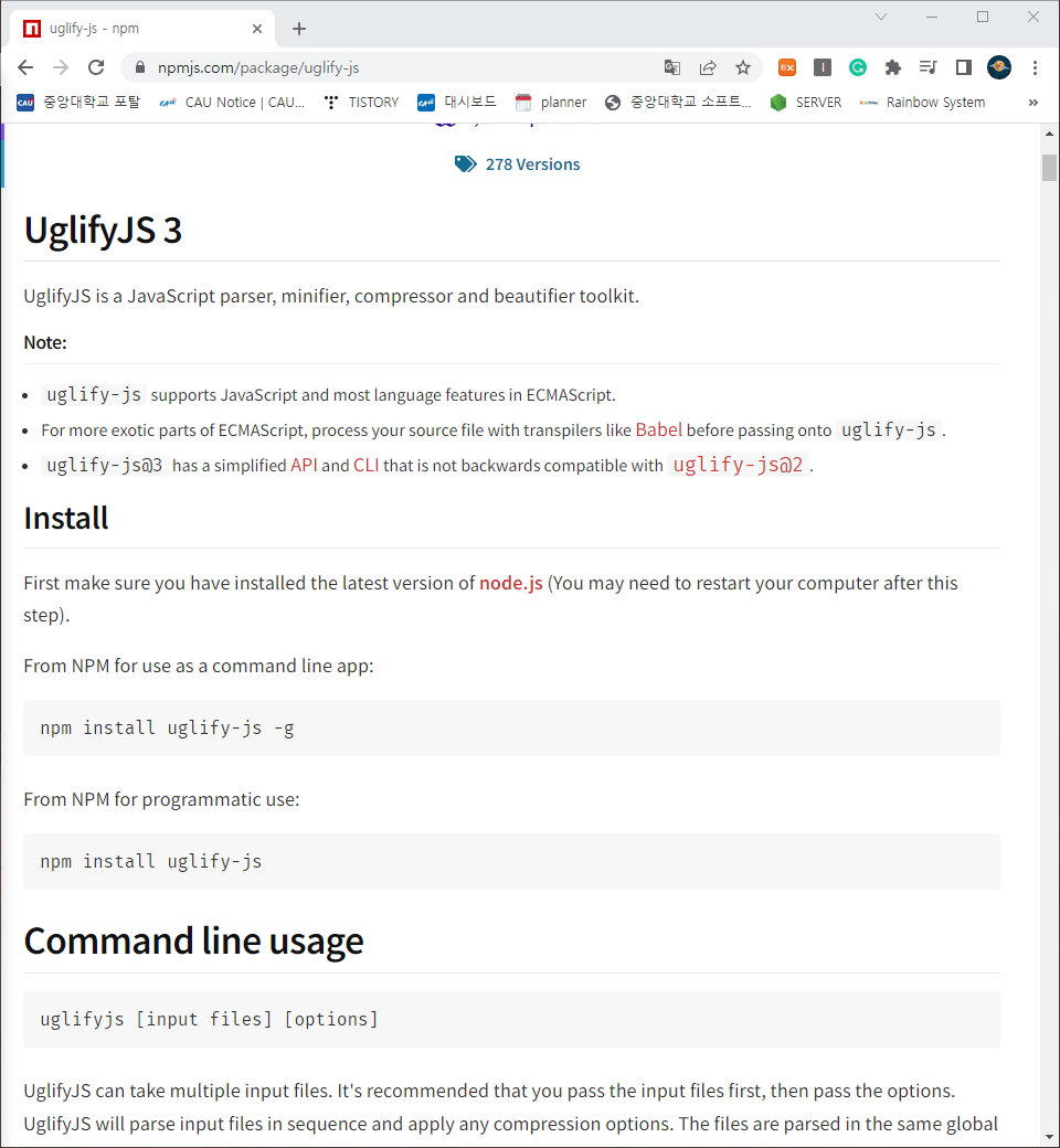 [npm] uglifyjs_기계가 코드를 처리하는데 필요한 필수적인 코드만 남겨준다