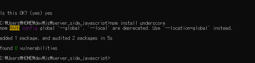 npm 상에서 현재의 디렉토리를 패키지로 지정하는 명령