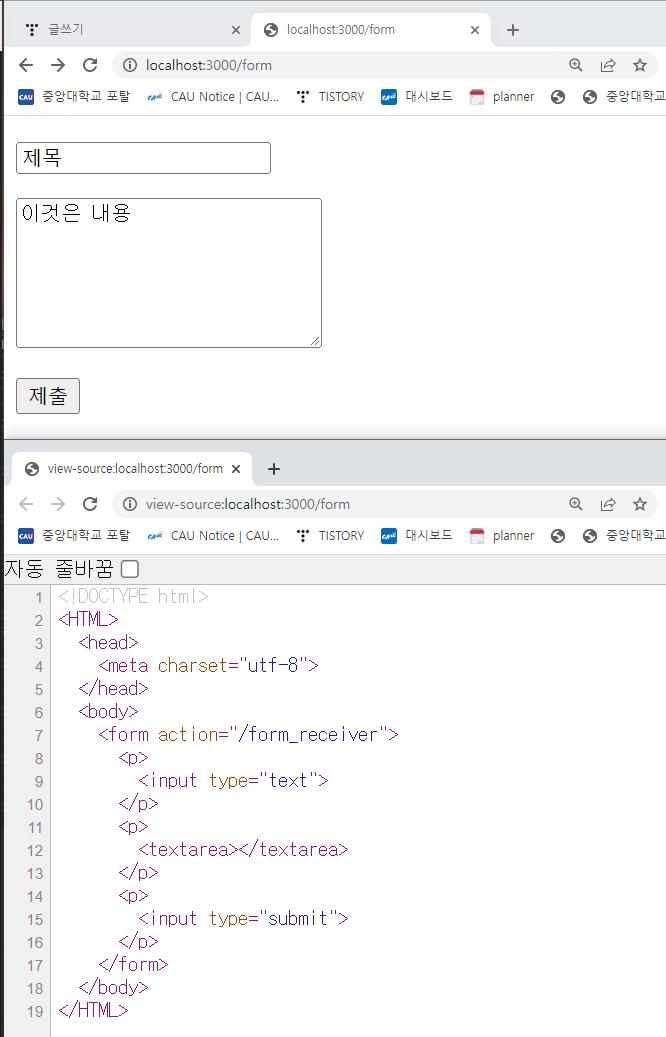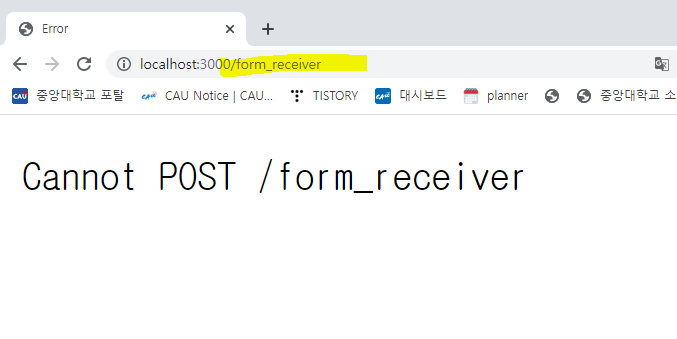서버로 잘 전송된 상태이나 post방식이면 url을 통해 데이터를 전송하지 않고, 우리 눈에 보이지 않는 방법으로 데이터를 전송한다.