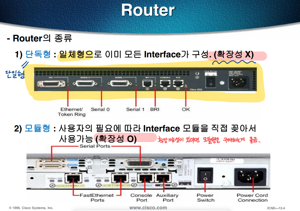 - Router는 성능, Interface의 숫자, 지원하는 기능, 메이커에 따라 가격이 다르다.