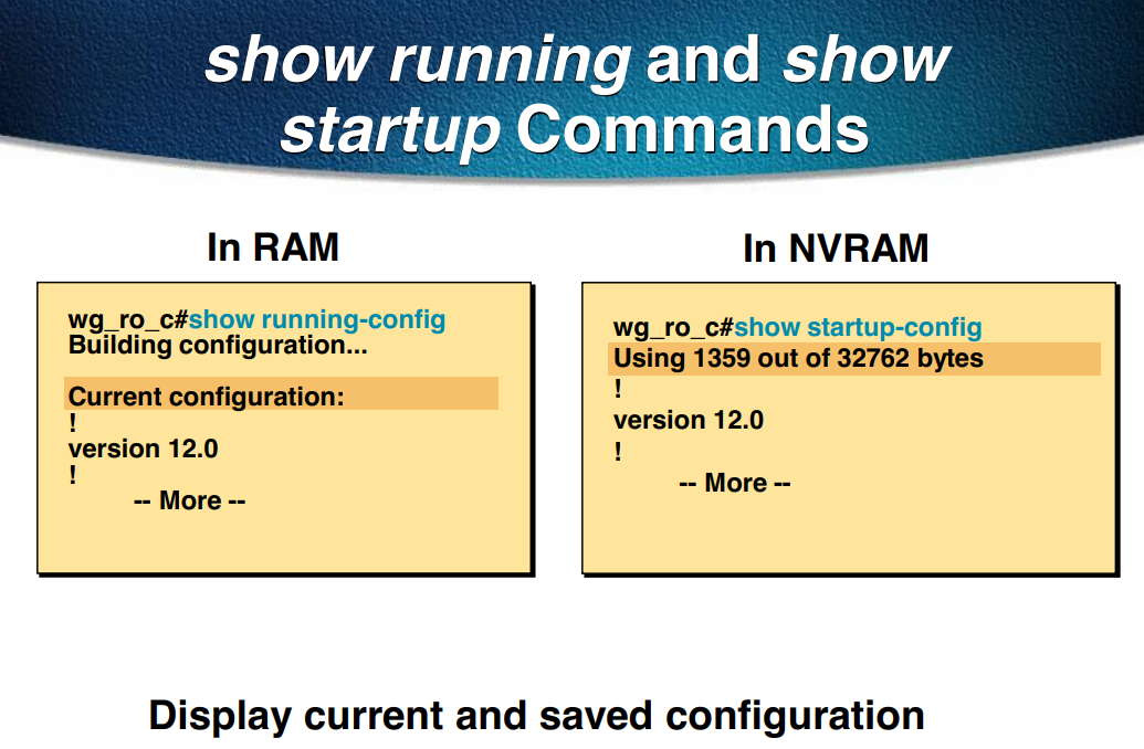 NVRAM에 저장된 설정내용은 'Startup-config' (전원을 차단해도 저장)