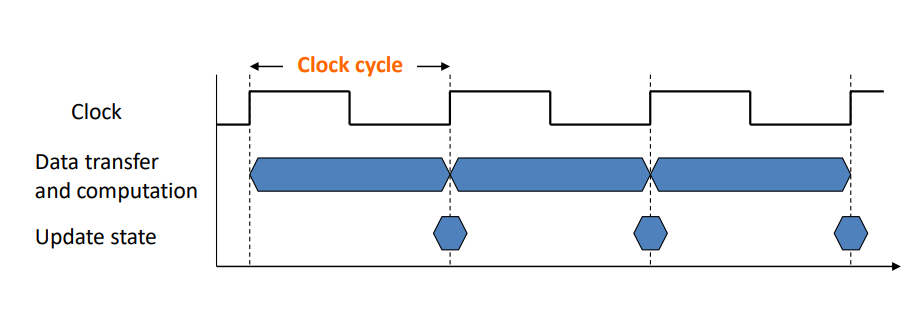 - operation of digital hardware governed by a constant-rate clock