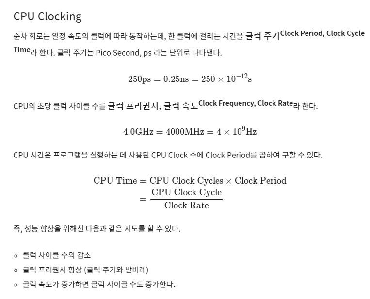 Clock frequency(=Clock rate)는 cycles per second 의미한다.
