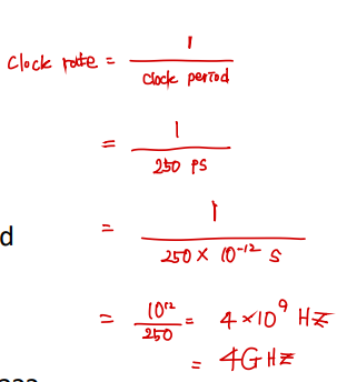 1/clock rate로 계산할 수 있다. 4GHz는 250ps가 된다.