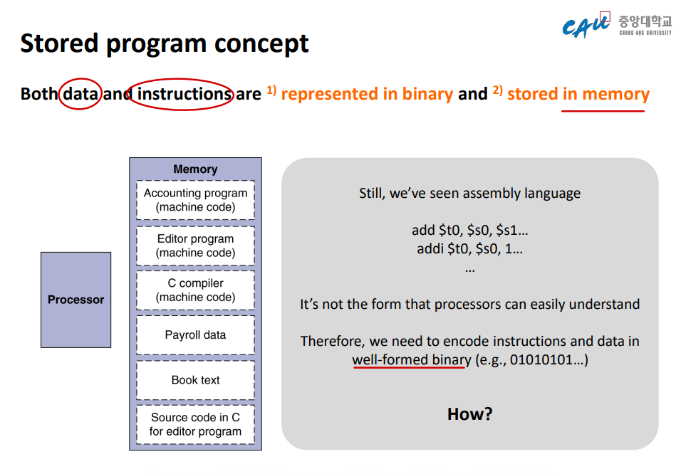 데이터와 마찬가지로, 명령어도 2진수로 encoding되고 표현된다.