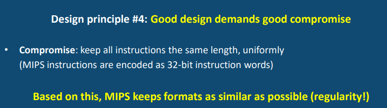 명령어를 표현하기 위해 ISA는 instruction formats(layout of instructions)을 정의한다.