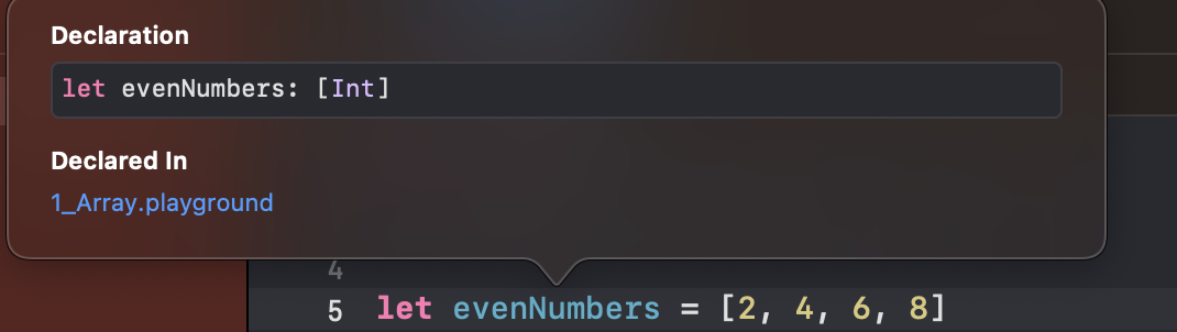 let evenNumbers: [Int] = [2, 4, 6, 8]