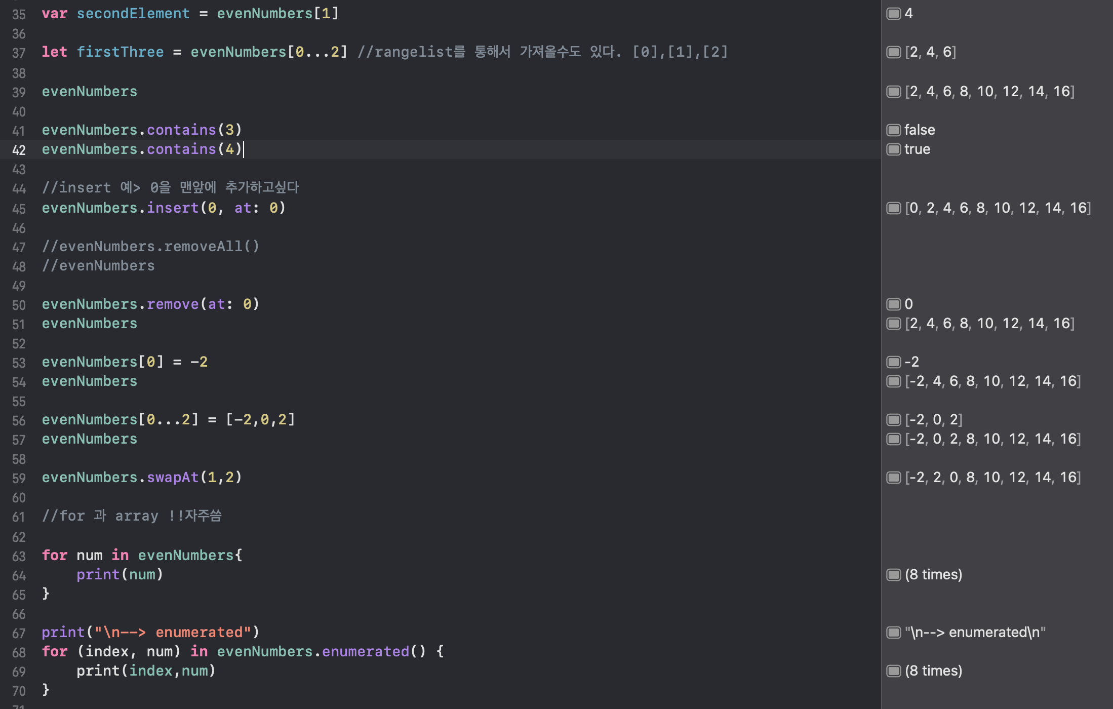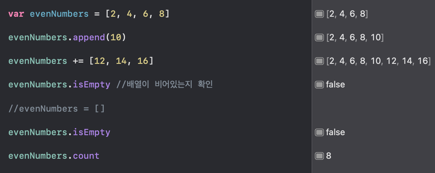 let evenNumbers2: Array<Int> = [2, 4, 6, 8]